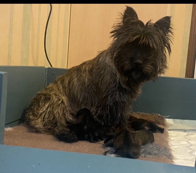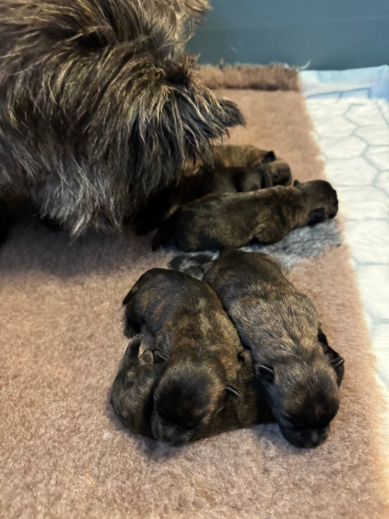 Frida har fått valper, og både mamma og valper har det bra. Det er en herlig liten gjeng, og Frida er allerede en supermamma som tar så godt vare på dem.