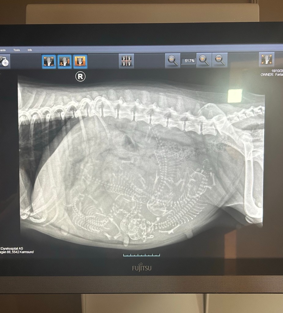 Og i dag har vi tatt røntgen av den store magen for å se hvor mange som gjemmer seg der inne. Fem fine små fant vi 🫶🏻